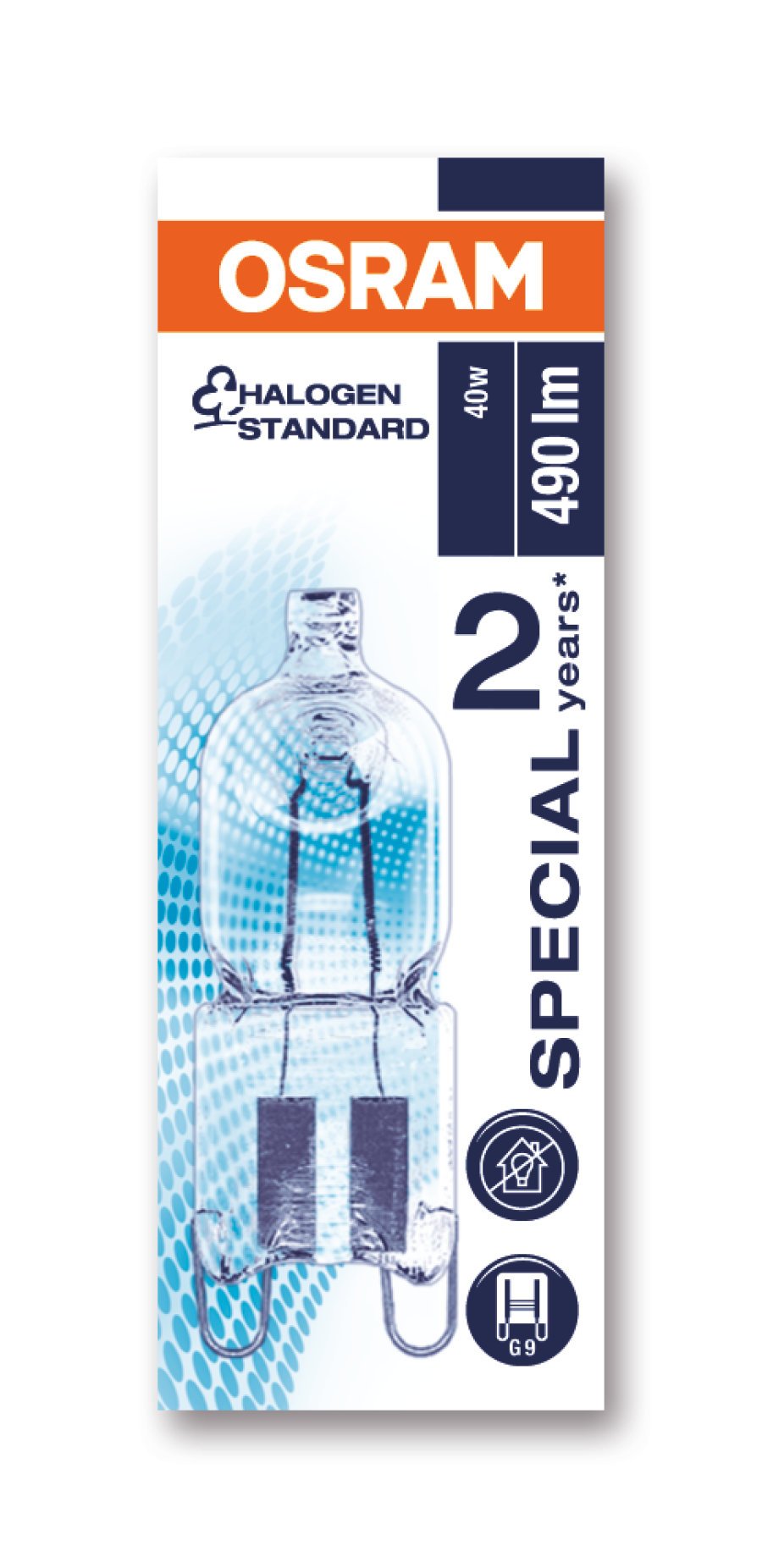 Osram HALOPIN OVEN 40 W 230 V G9. Potencia de bombilla: 40 W, Tamaño de la lámpara: T13, Color de luz: Blanco cálido, Índice de Entrega de Color (CRI): 100, Regulable