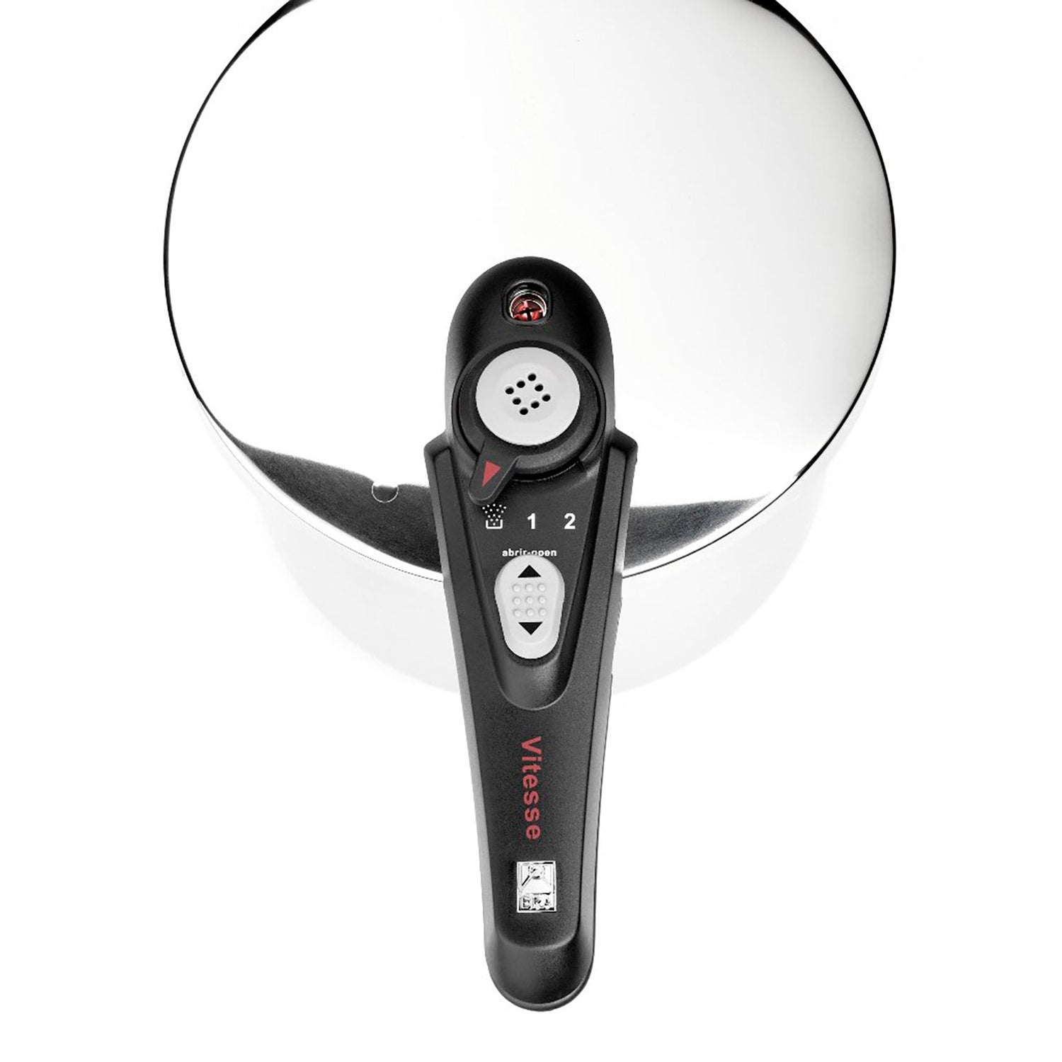 La olla a presión Vitesse es la olla a presión rápida para los más exigentes, con una eficacia y seguridad total para un nivel de cocina intensiva. Está fabricada en acero inoxidable 18/10 muy resistente al desgaste, con triple fondo difusor para un reparto homogéneo del calor que la convierte en apta para todo tipo de cocinas, incluida la inducción. Dispone de dos programas de cocción, 3 sistemas de seguridad a presión y 1 sistema de bloqueo de apertura, cumpliendo con la normativa CE.