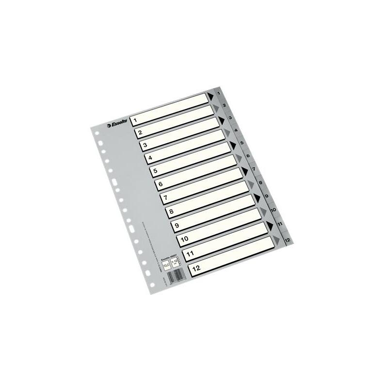 Pack De 50 Unidades Esselte Bolsa De 50 Indices Numericos De Plastico - Pestañas 1 Al 12 - Multitaladro - Formato A4 - Color Gris