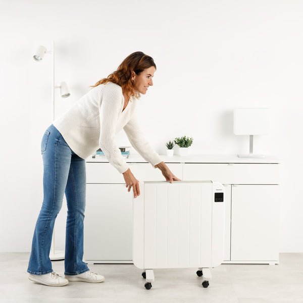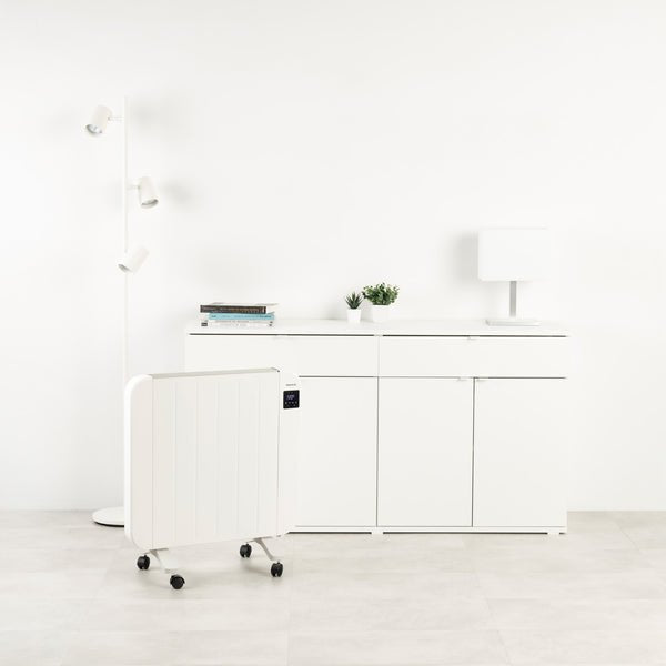 Gracias a sus 1500 W y 6 elementos calefactores de aluminio, calienta eficazmente dormitorios medianos, comedores pequeños o salas de estudio. Su cuerpo de acero ofrece una gran inercia térmica, manteniendo el calor más tiempo y de forma uniforme, ideal para un uso prolongado y constante.