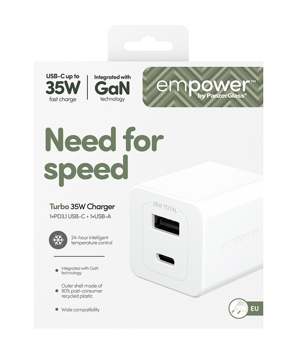 Panzerglass Empower Turbo 35w Charger Inkl. Usb-C + Usb-A Eu Plug Silver Blanco