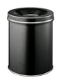 Papelera con tapa extintora que previene la propagación del fuego. Su tapa de aluminio interrumpe la entrada de oxígeno en la papelera, con la consiguiente extinción de las llamas. Fabricada en acero con resistente recubrimiento de poliéster con esmalte epoxi antiarañazos. Volumen: 15 litros. Medidas (Al x Ø): 357 x 260 mm.
