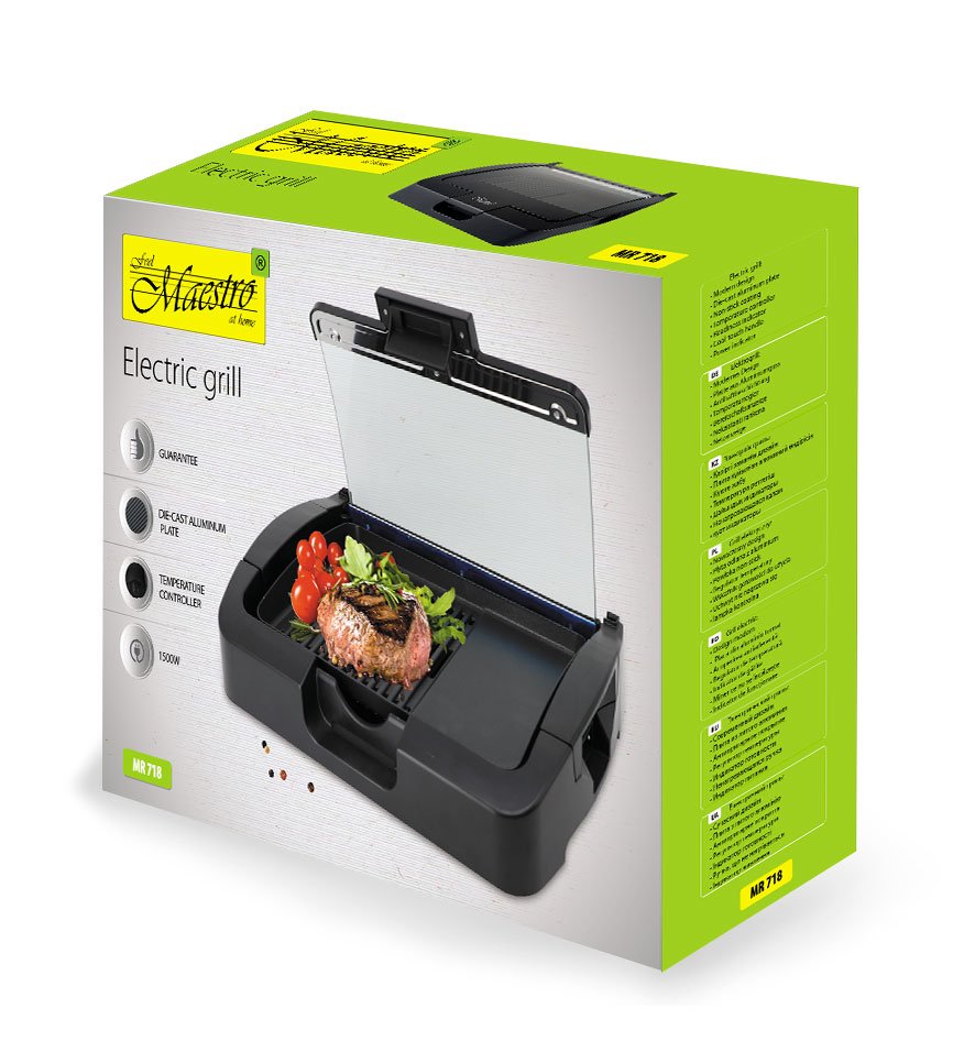 Feel Maestro MR718. Color del producto: Negro, Factor de forma: Rectangular, Material de superficie de cocción: Aluminio. Potencia: 1500 W, Voltaje de entrada AC: 220 - 240 V