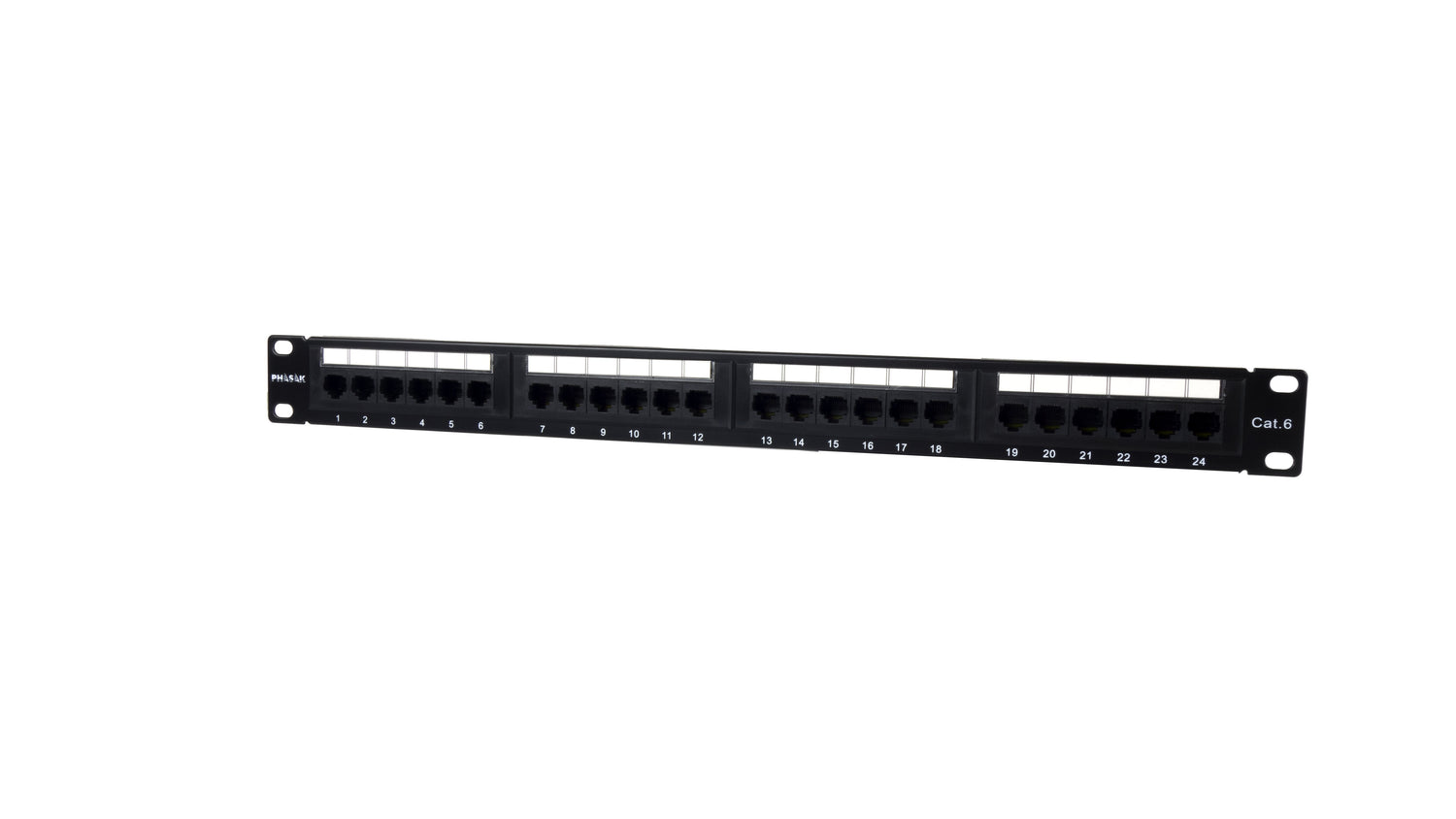 Patch Panel Phasak Pu 2424 24 Puertos Cat.6 Altura 1u Gestión De Cables