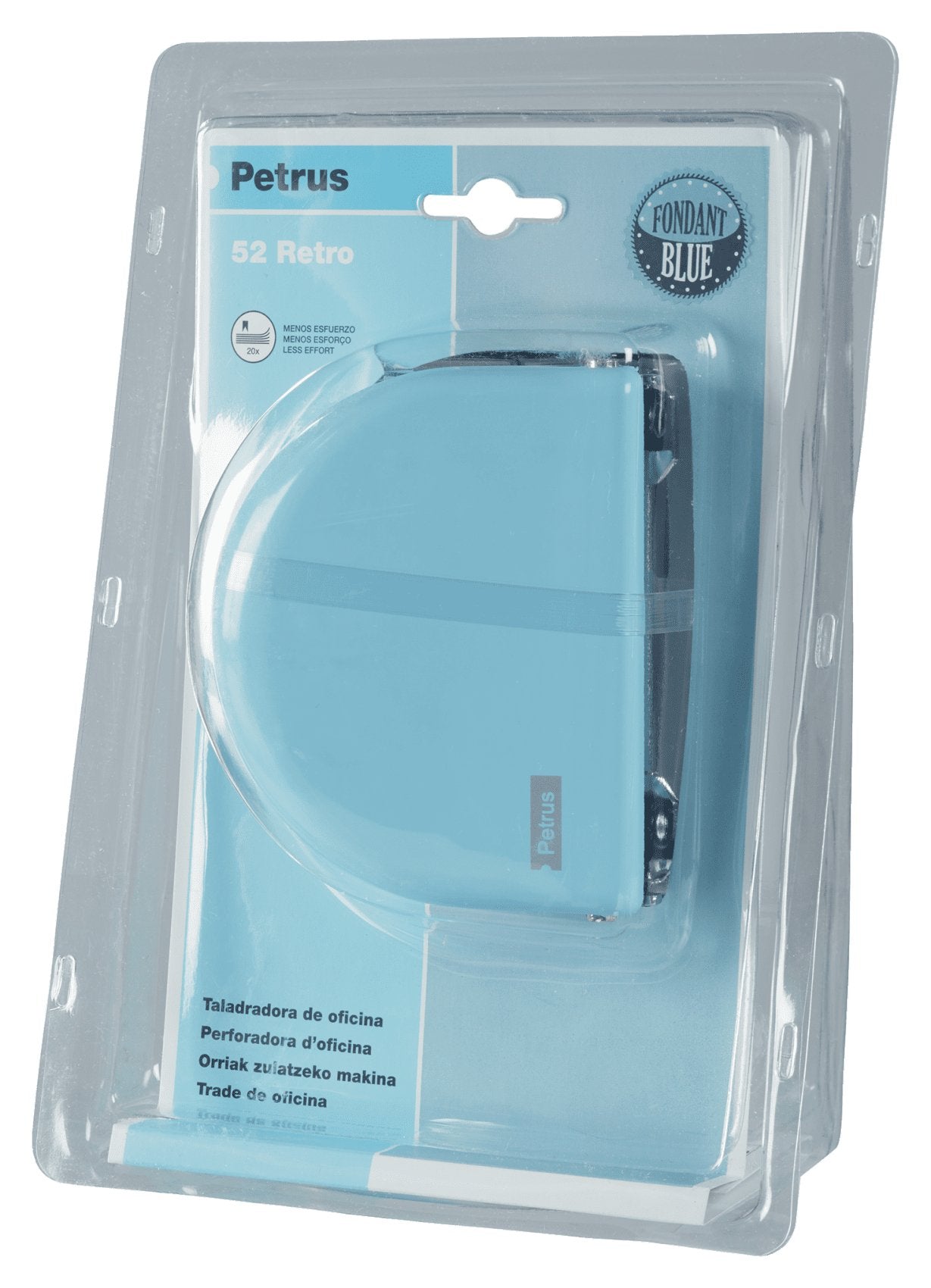 Petrus 624409. Capacidad de perforación: 20 hojas, Color del producto: Azul, Color base: Negro. Ancho: 94 mm, Profundidad: 140 mm, Altura: 87 mm. Cantidad por paquete: 1 pieza(s). Periodo de garantía: 10 año(s)