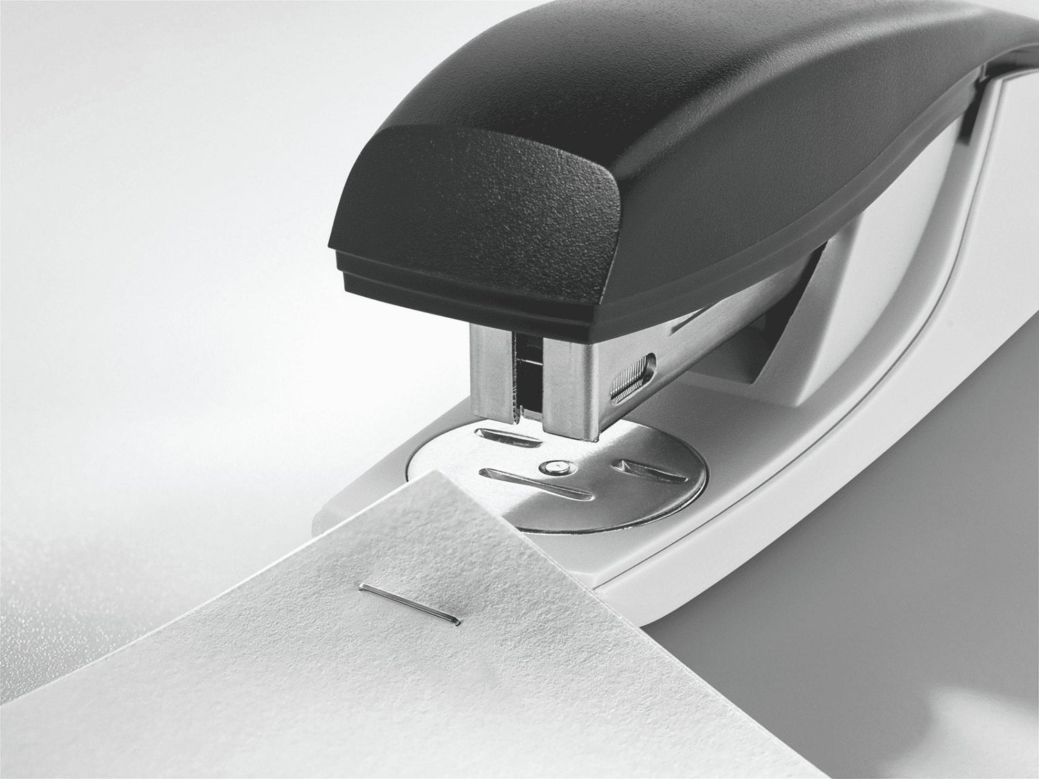 Grapadora fiable para uso cotidiano en la oficina. La tecnología de impacto directo patentada garantiza siempre un grapado perfecto.