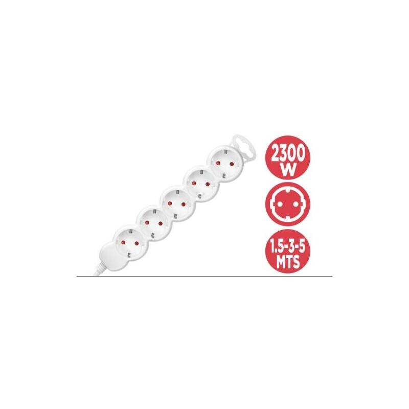 Phasak Regleta 5 Tomas Schuko Sin Interruptor Blanca Cable 1,5 Metros