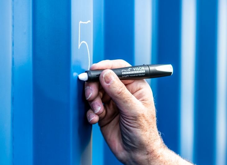 Pica-Marker Visor. Colores de escritura: Blanco, Color del producto: Negro, Naranja, Blanco, Apto para tipo de superficie: Madera/laminado, Plástico, Neumático, Vidrio, Cerámico, Metal. Longitud: 85 mm, Diámetro: 1 cm. Cantidad por paquete: 5 pieza(s)