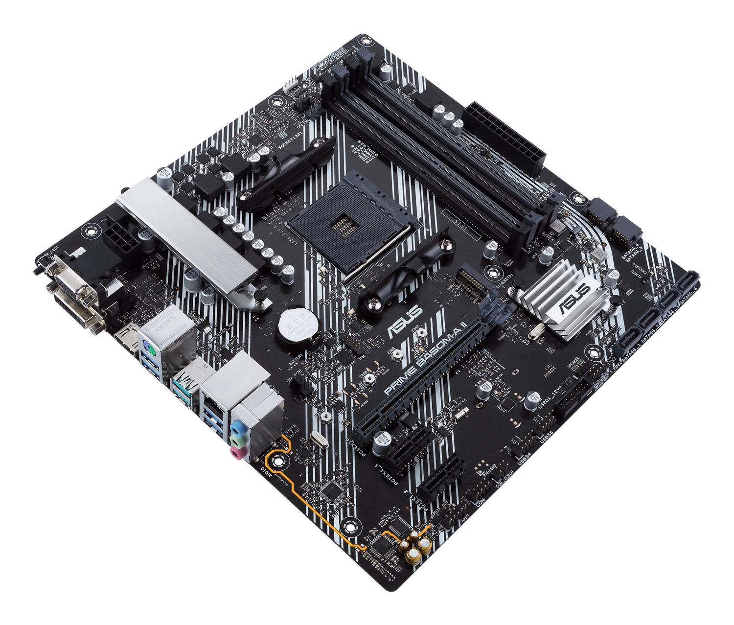 ASUS PRIME B450M-A II. Fabricante de procesador: AMD, Socket de procesador: Zócalo AM4, Procesador compatible: AMD Ryzen 3000 Series. tipos de memoria compatibles: DDR4-SDRAM, Memoria interna máxima: 128 GB, Tipo de ranuras de memoria: DIMM. Interfaces de disco de almacenamiento soportados: SATA III, Tipos de unidades de almacenamiento admitidas: HDD & SSD. Versión HDMI: 2.0b. Tipo de interfaz ethernet: Gigabit Ethernet, Controlador LAN: Realtek RTL8111H