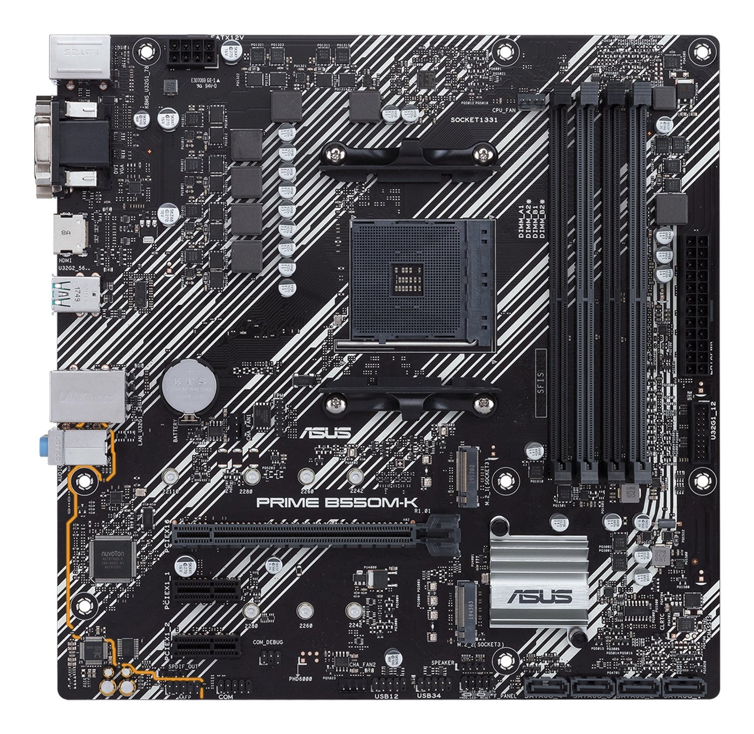 ASUS PRIME B550M-K, AMD, Zócalo AM4, AMD Ryzen 3000 Series, DDR4-SDRAM, 128 GB, DIMM