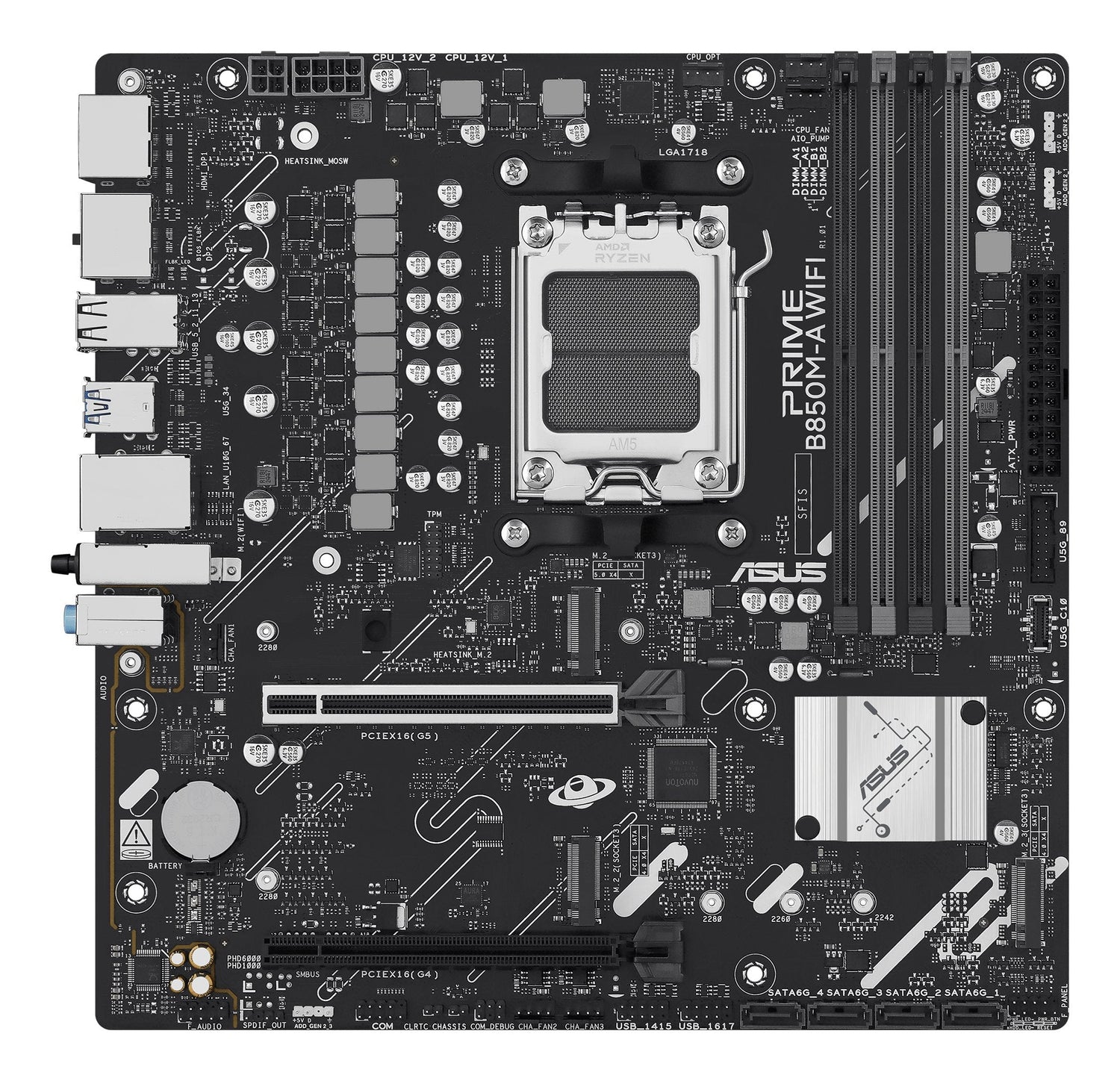 ASUS PRIME B850M-A WIFI, AMD, Zócalo AM5, AMD Ryzen 7000 Series, AMD Ryzen 8000 Series, AMD Ryzen 9000 Series, DDR5-SDRAM, 256 GB, DIMM