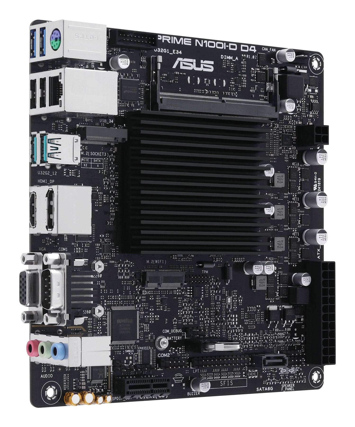 ASUS PRIME N100I-D D4. Fabricante de procesador: Intel, Socket de procesador: NA (CPU integrada), Procesador compatible: Intel Processor N. tipos de memoria compatibles: DDR4-SDRAM, Memoria interna máxima: 16 GB, Tipo de ranuras de memoria: SO-DIMM. Interfaces de disco de almacenamiento soportados: M.2, SATA III, Tipos de unidades de almacenamiento admitidas: HDD & SSD. Tipo de interfaz ethernet: Gigabit Ethernet. Componente para: PC, Factor de forma: mini ITX, Familia del chipset: Intel