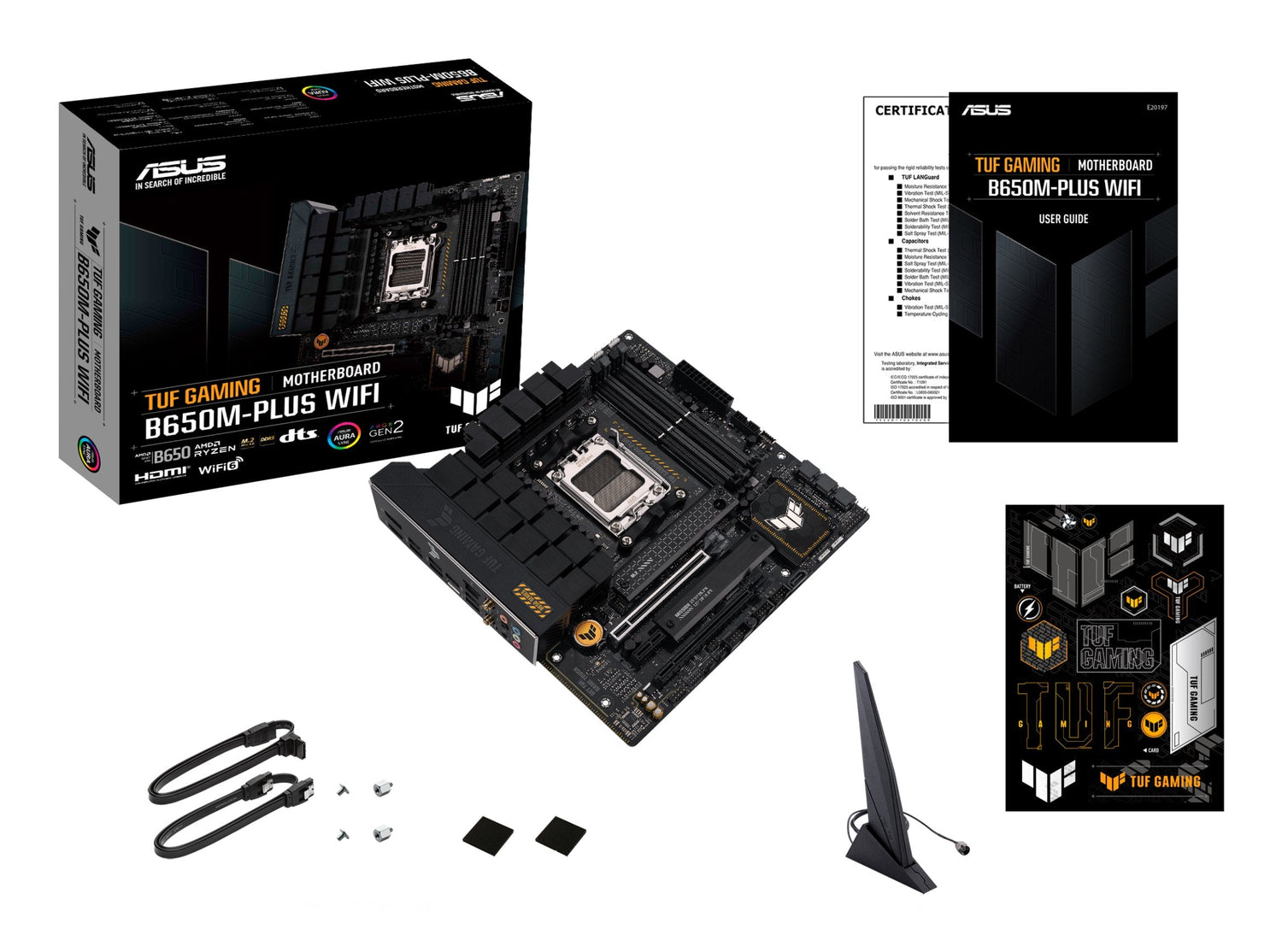 ASUS TUF GAMING B650M-PLUS WIFI. Fabricante de procesador: AMD, Socket de procesador: Zócalo AM5. tipos de memoria compatibles: DDR5-SDRAM, Memoria interna máxima: 128 GB, Tipo de ranuras de memoria: DIMM. Interfaces de disco de almacenamiento soportados: M.2, SATA III, Tipos de unidades de almacenamiento admitidas: HDD & SSD, Niveles RAID: 0, 1, 10. Tipo de interfaz ethernet: 2.5 Gigabit Ethernet, Ethernet rápido, Gigabit Ethernet, Estándar Wi-Fi: Wi-Fi 6 (802.11ax), Wi-Fi estándares: 802.11a, 802.11b, 802.11g, Wi-Fi 4 (802.11n), Wi-Fi 5 (802.11ac), Wi-Fi 6 (802.11ax). Componente para: PC, Factor de forma: micro ATX, Familia del chipset: AMD
