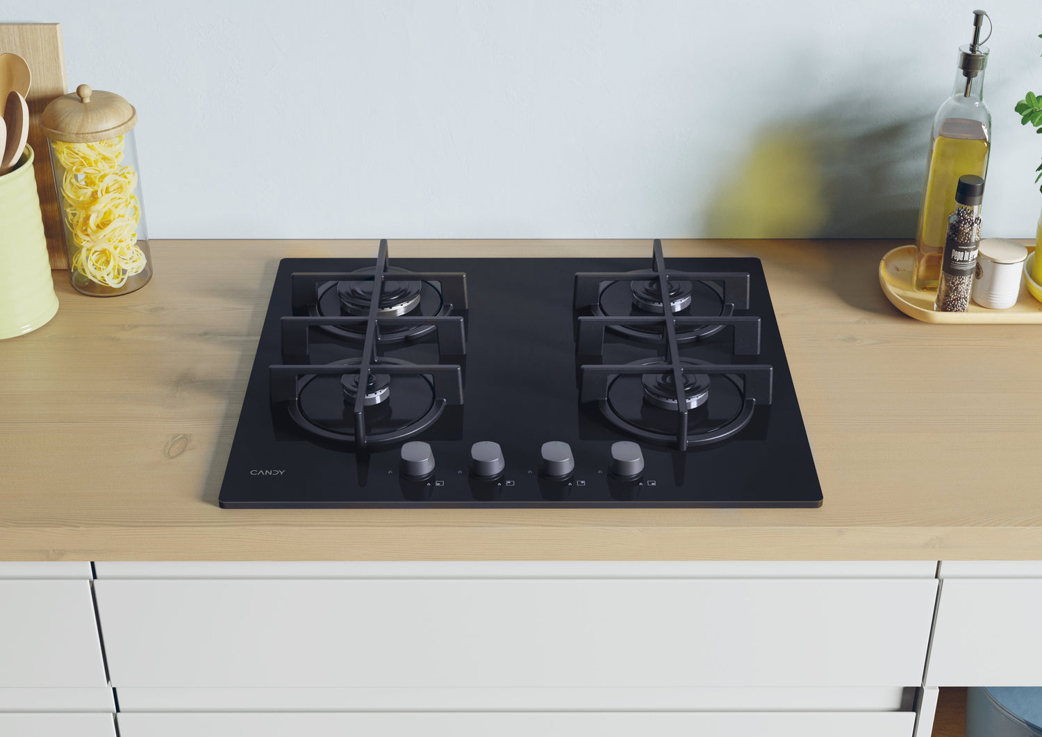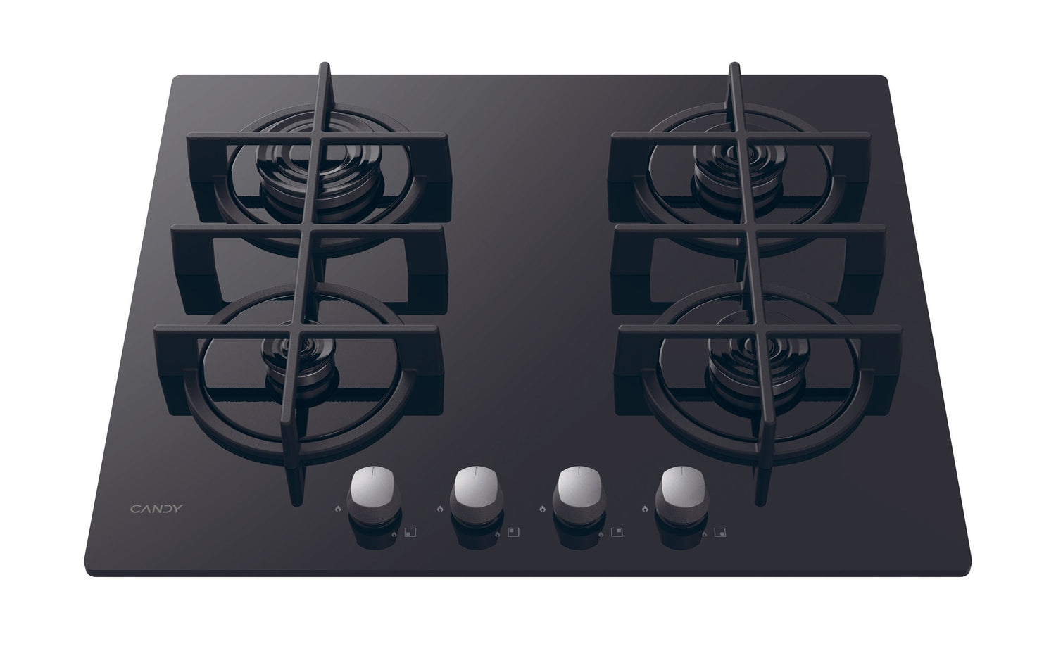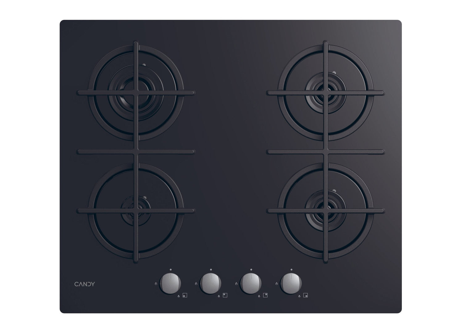 Candy CVG6B, Negro, Integrado, 59 cm, Encimera de gas, Vidrio templado, 4 zona(s)
