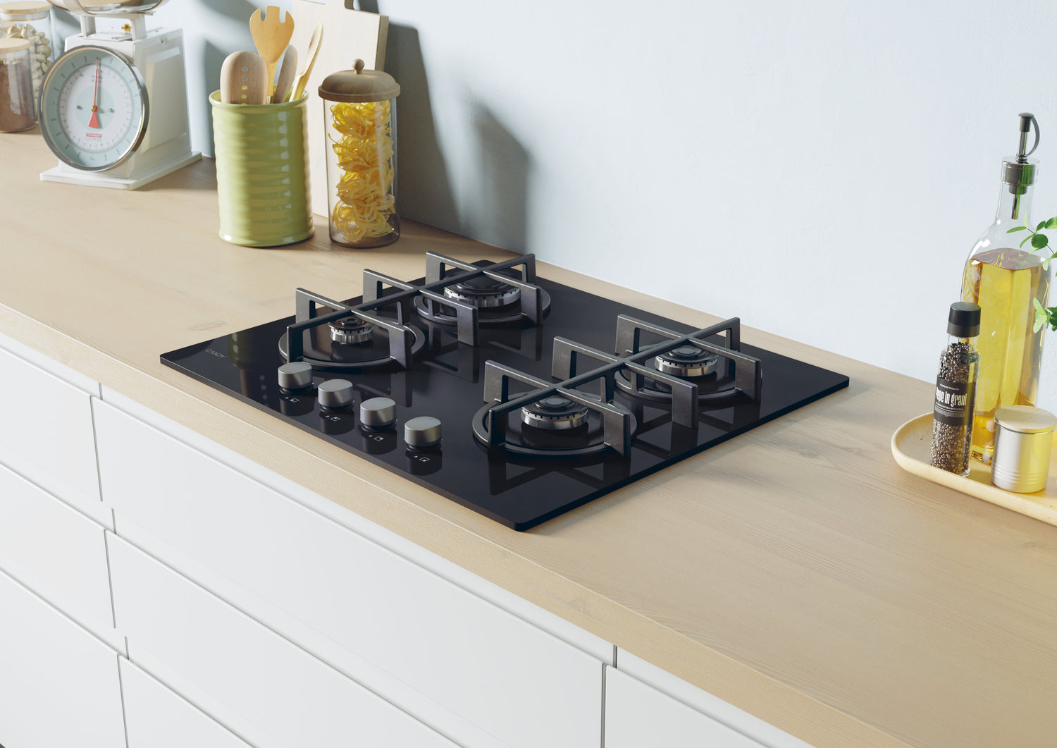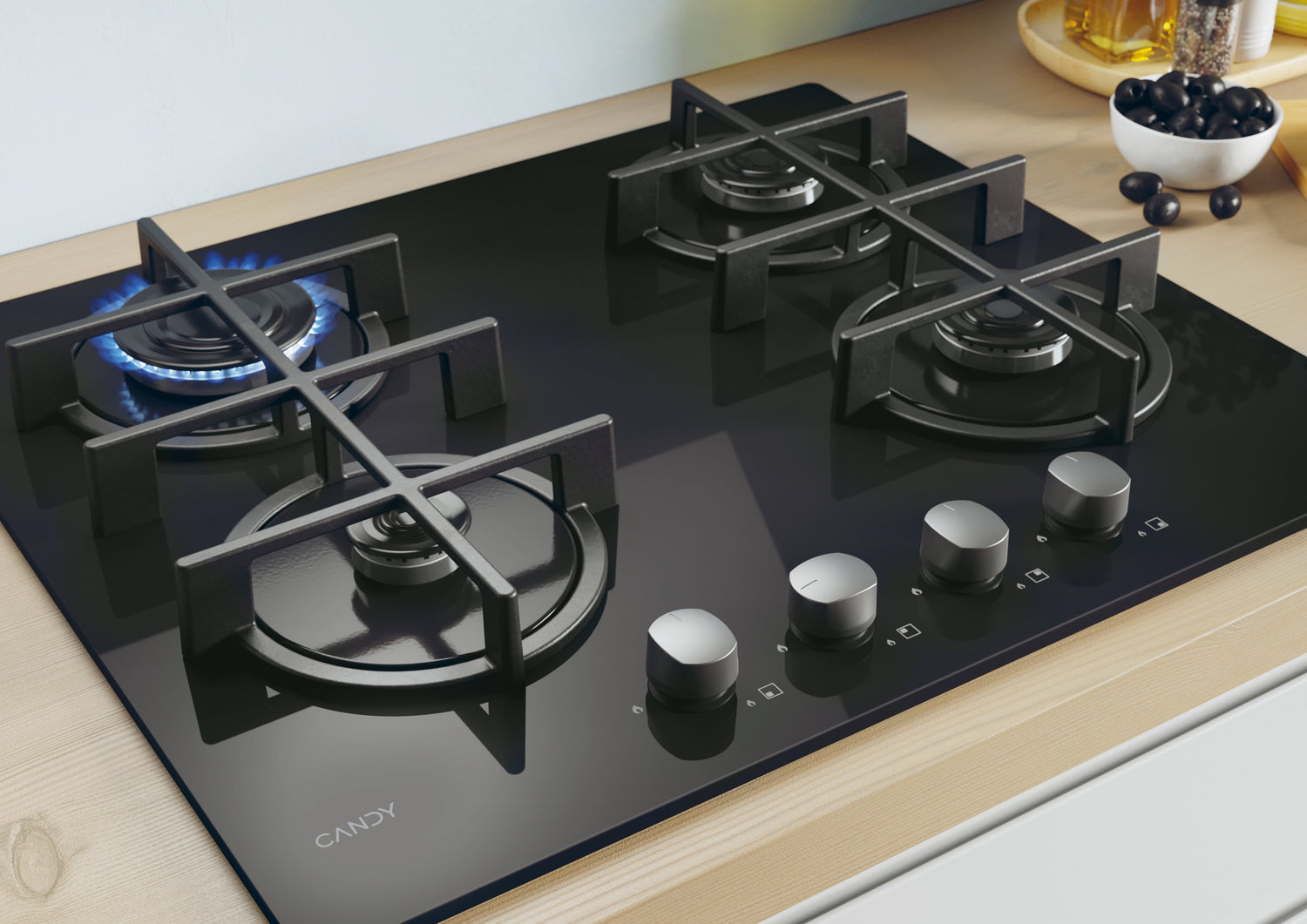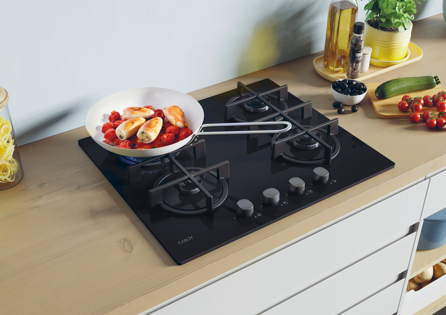 Candy CVG6B, Negro, Integrado, 59 cm, Encimera de gas, Vidrio templado, 4 zona(s)