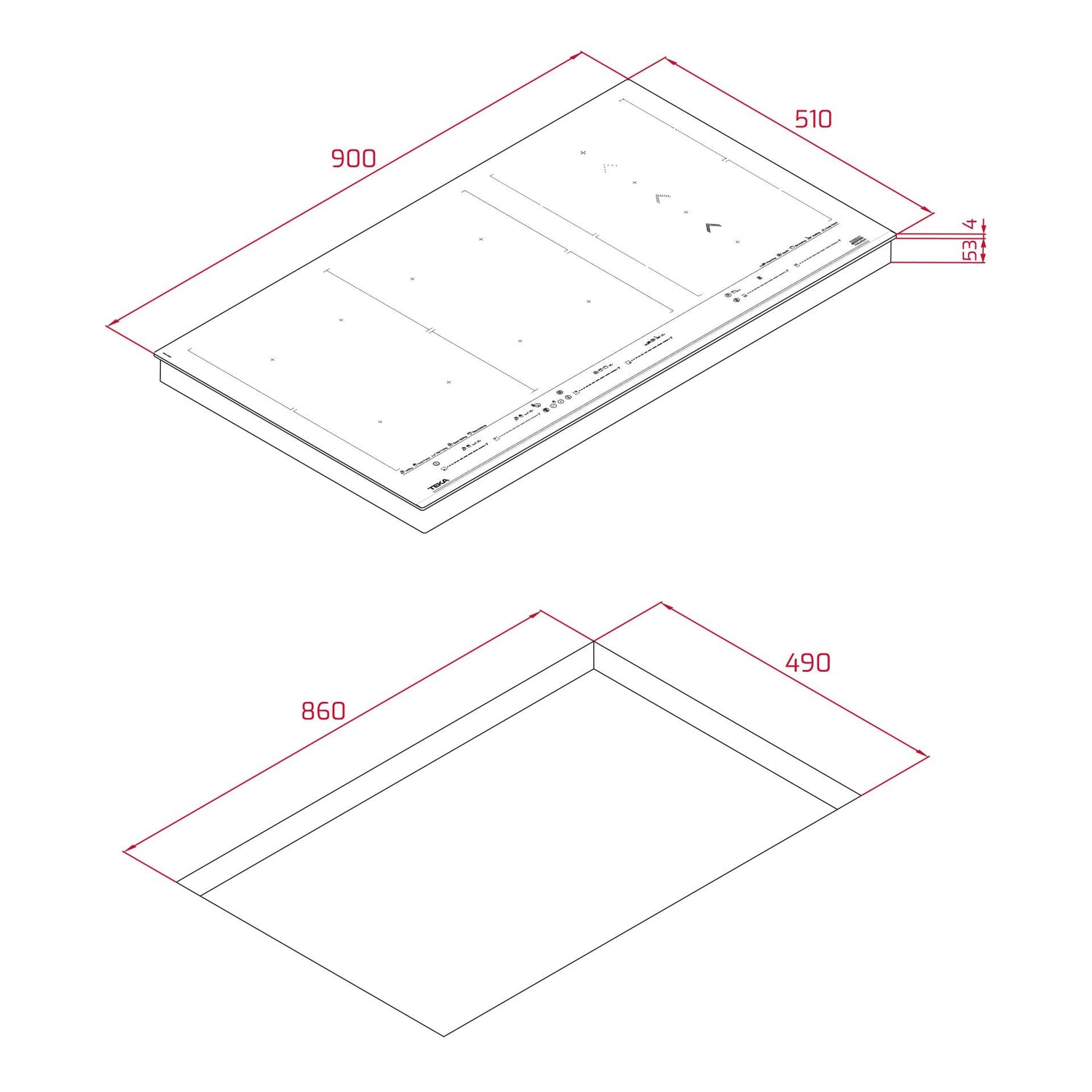 Teka IZF 99700 MST. Color del producto: Negro, Tipo de instalación: Integrado, Anchura de los quemadores: 90 cm. Tipo de control: Tocar, Control de posición: Parte superior delantera. Carga conectada (eléctrica): 11100 W, Voltaje de entrada AC: 220 - 240 V, Frecuencia de entrada AC: 50 - 60 Hz. Ancho: 900 mm, Profundidad: 510 mm, Altura: 55 mm