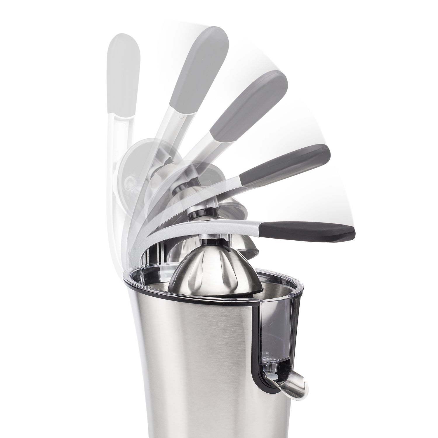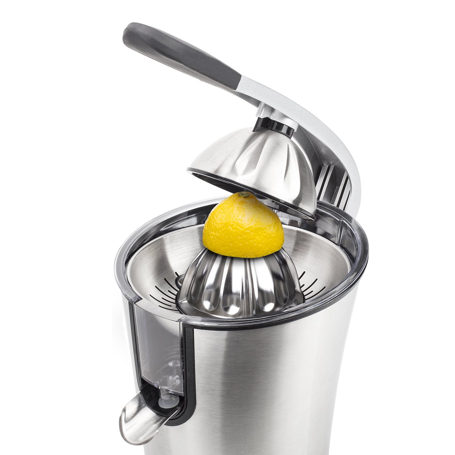 - Gracias a su resistente material de acero inoxidable y a sus 300 vatios, el exprimidor de acero inoxidable es adecuado para todo tipo de cítricos, grandes y pequeños.
