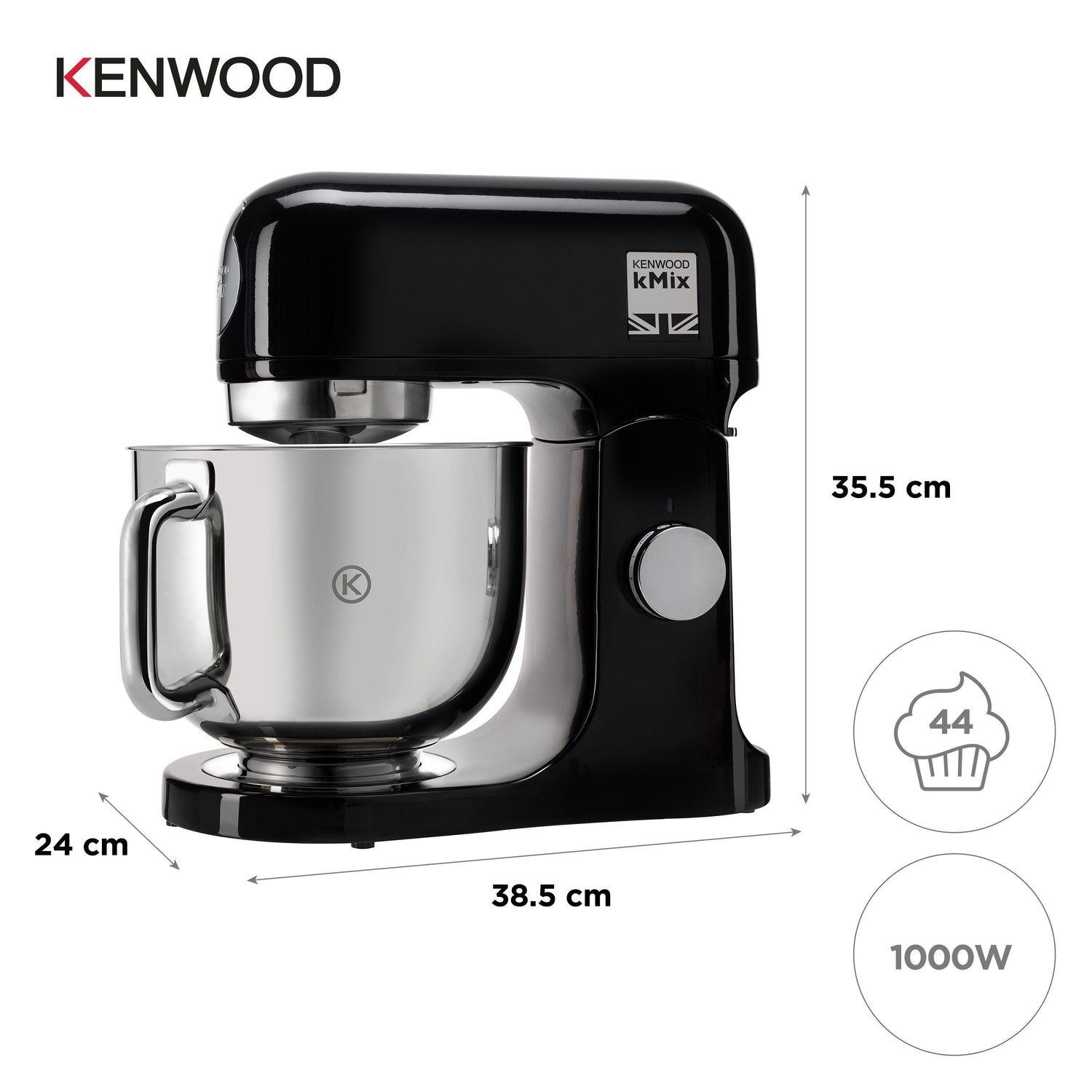 Kenwood kMix. Capacidad del tazón: 5 L, Color del producto: Negro, Plata, Tipo de control: Giratorio. Material del tazón: Acero inoxidable, Material de la carcasa: Metal. Potencia: 1000 W. Ancho: 385 mm, Profundidad: 240 mm, Altura: 355 mm. Ancho del paquete: 298 mm, Profundidad del paquete: 450 mm, Altura del paquete: 463 mm
