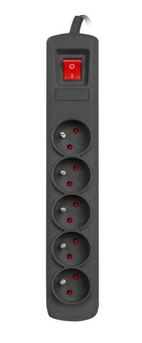 NATEC NSP-1715. Índice de aumento de energía: 182 J, Cantidad de salidas AC: 5 salidas AC, Tipo de salida AC: Tipo E. Color del producto: Negro, Material: Plástico, País de origen: Polonia. Longitud de cable: 5 m, Peso: 440 g, Ancho: 55 mm