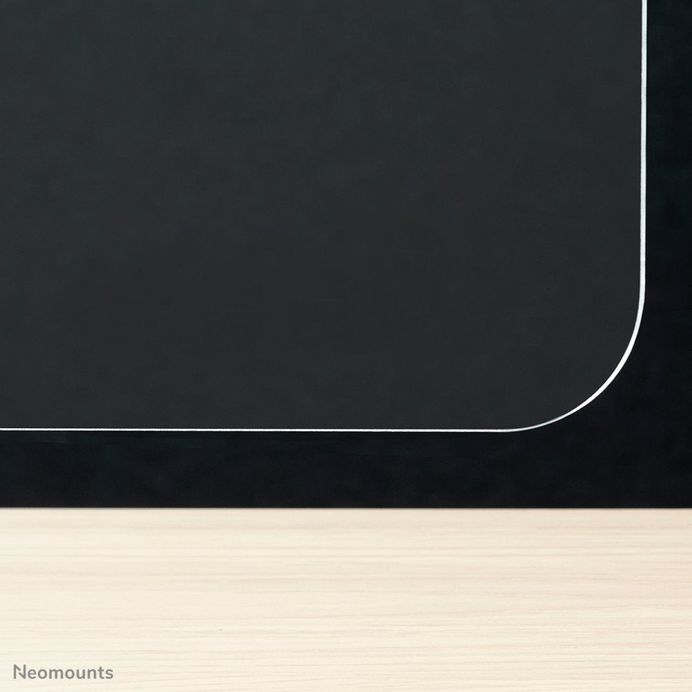 El NS-PLXPROTECT1 tiene 120 cm de ancho x 74 cm de alto y es adecuado para pantallas planas de hasta 32" con un patrón de agujeros VESA centrados de 100x100 mm. La pantalla está hecha de acrílico 100% transparente para asegurar una sensación de amplitud y tiene las esquinas redondeadas. La pantalla está equipada con 2 puntos de fijación, de modo que es ajustable en altura con respecto al monitor. Debido a que el NS-PLXPROTECT1 se monta entre la pantalla plana y el soporte de escritorio, la pantalla se mueve con el monitor y la estación de trabajo de pie-sentado cuando se ajustan en altura.