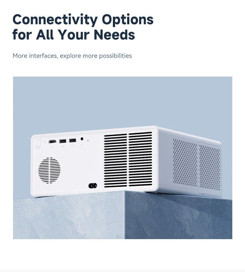 WANBO X5 AIR. Brillo de proyector: 1100 lúmenes ANSI, Resolución de origen: 1920 x 1080 Pixeles, Razón de contraste (típica): 16:9. Dimensiones (Ancho x Profundidad x Altura): 252 x 246 x 115 mm, Peso: 2,7 kg. Interfaz: HDMI, USB, AUX. Plataforma: Android, RAM mínima: 2048 MB, Espacio mínimo de almacenamiento del disco: 32768 MB. Color del producto: Blanco
