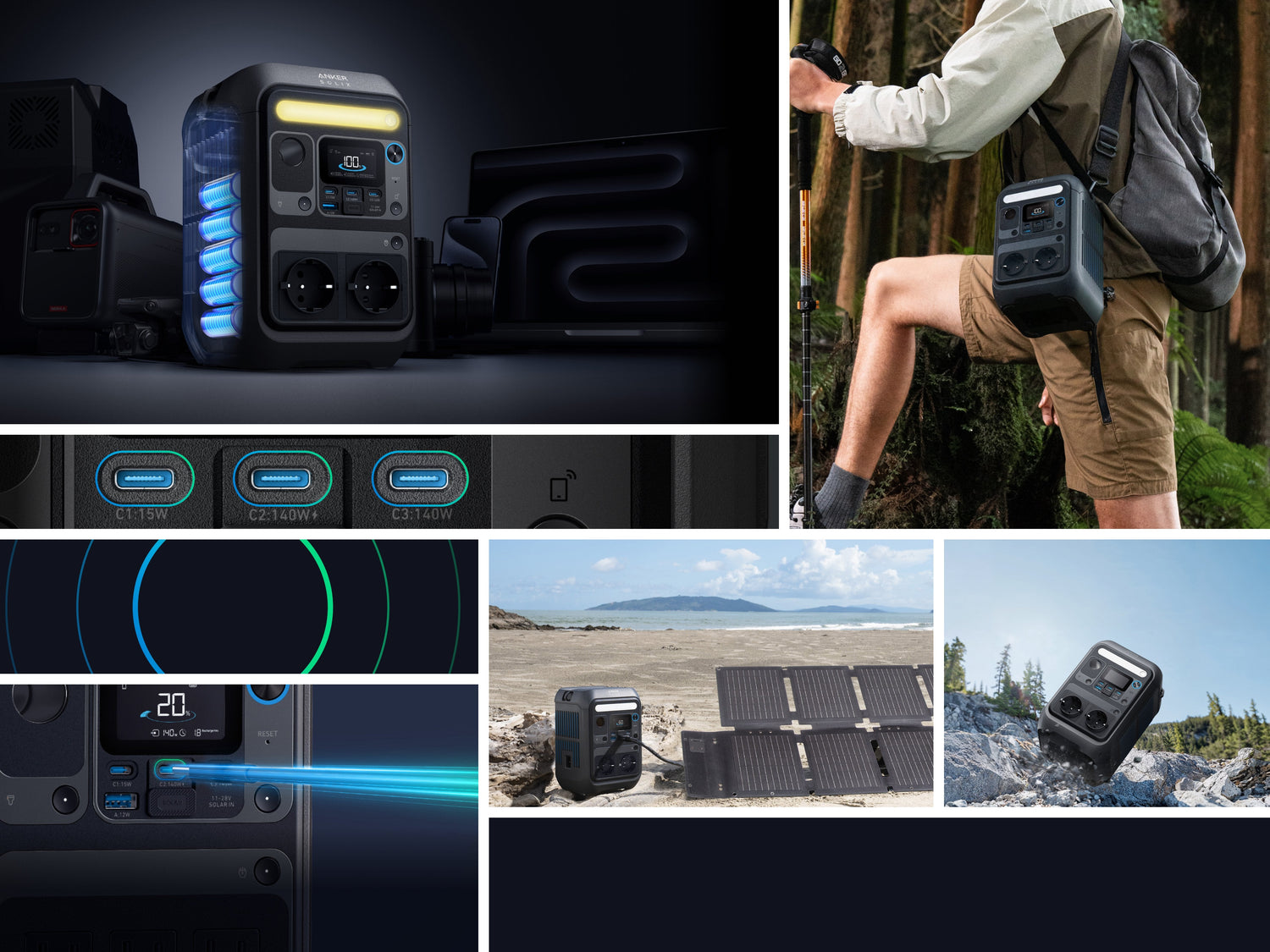 Anker SOLIX C300X. Tecnología de batería: Fosfato de hierro-litio (LiFePo4), Capacidad de batería: 90000 mAh, Fuente de carga: Corriente alterna, Solar. Color del producto: Negro, Forma: Rectángulo, Tipo de control: Botones. Cantidad de salidas AC: 5 salidas AC, Conector USB: USB tipo A, USB Tipo C. Cantidad por paquete: 1 pieza(s)