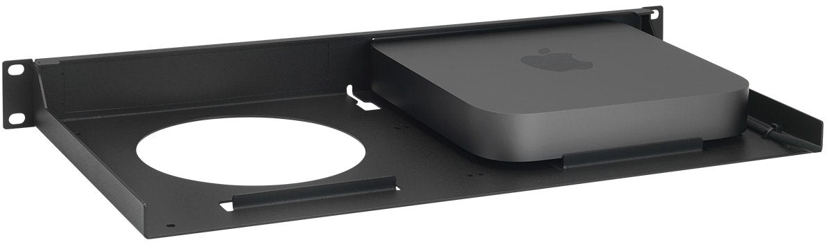 RM-AP-T1 le permite montar sus dispositivos de sobremesa Apple en un rack de 19”. El rack está diseñado específicamente para los modelos mencionados para garantizar un ajuste perfecto. Además, las conexiones se llevan a la parte frontal para facilitar el acceso. El anclaje de la fuente de alimentación evita una pérdida accidental de energía.