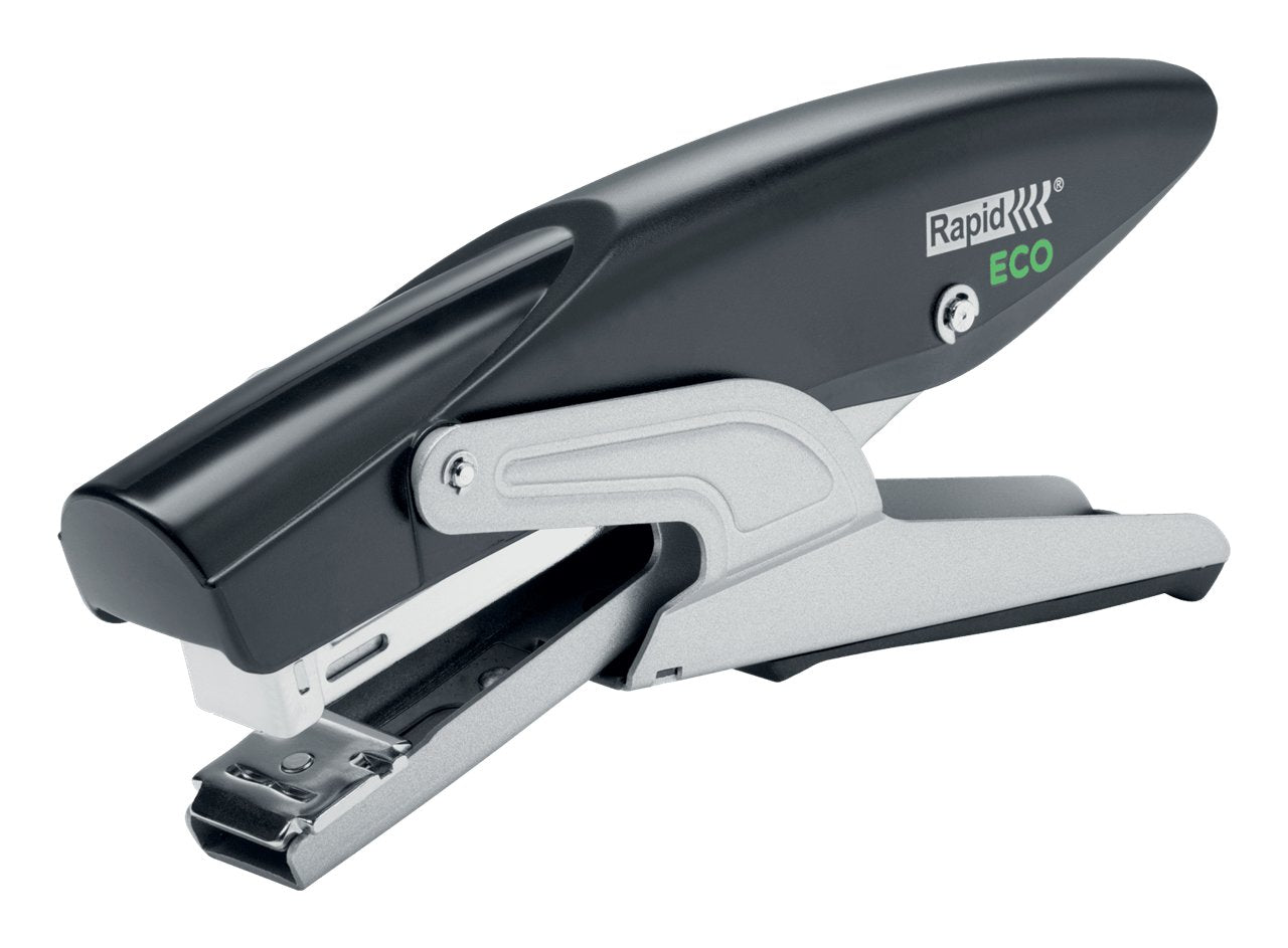 Rapid Eco Grapadora De Tenaza - Fabricadas Con Un 81% De Plastico Reciclado - Hasta 20 Hojas - Para Grapas 24/6, 26/6 - Grapado Y Clavado - Color Negro