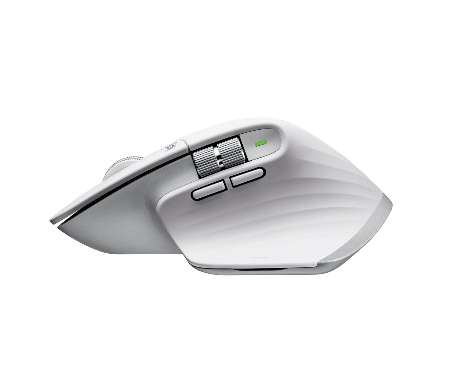 Logitech MX Master 3S, mano derecha, Laser, RF Wireless + Bluetooth, 8000 DPI, Plata, Blanco