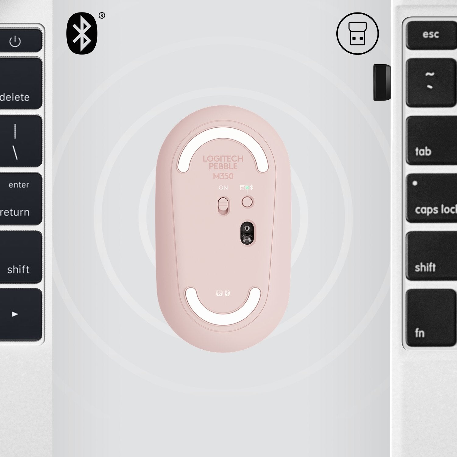 Logitech Pebble M350, Ambidextro, Óptico, RF Wireless + Bluetooth, 1000 DPI, Rosa