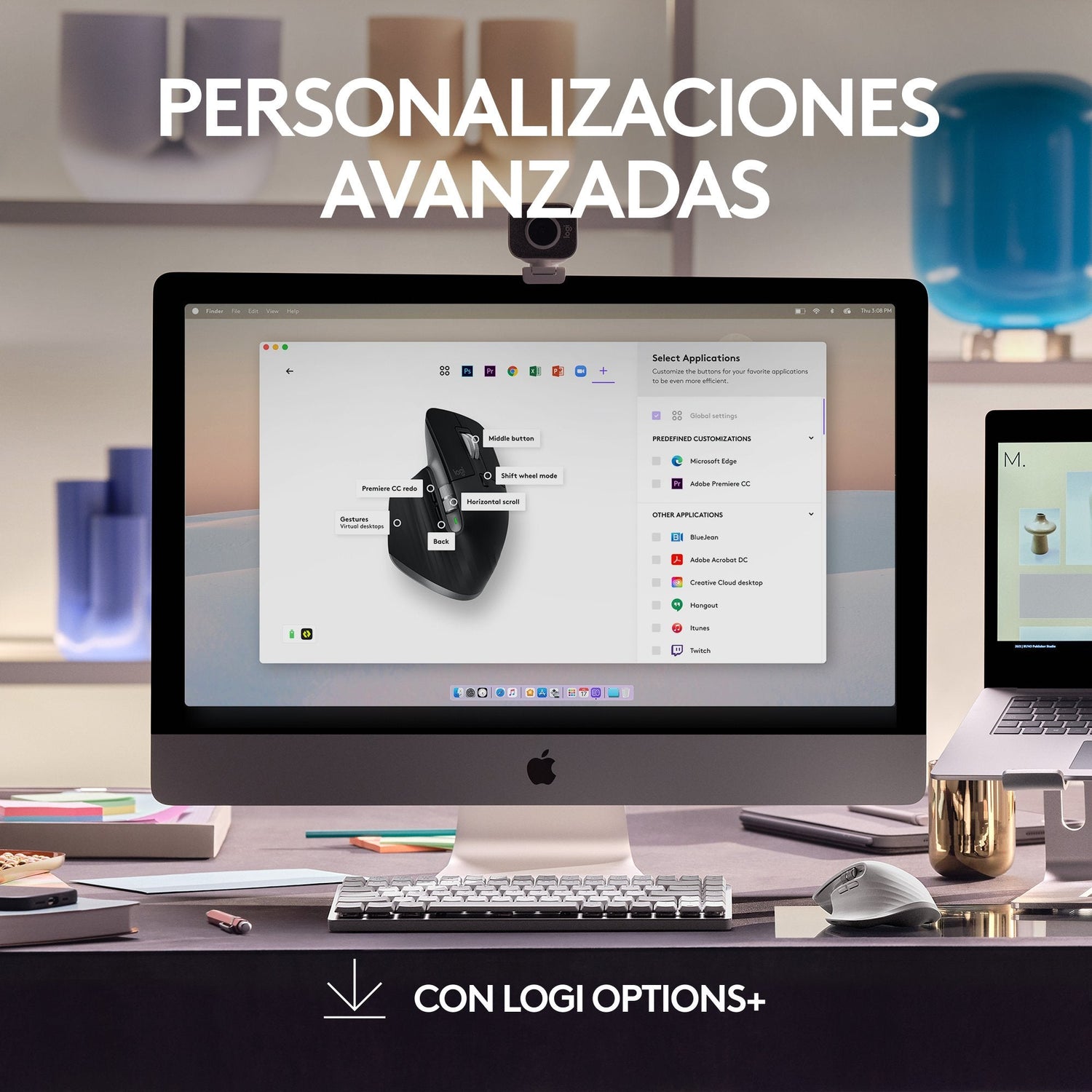 - Personalizaciones específicas de la aplicación: acelera y personaliza su flujo de trabajo con perfiles predefinidos para macOS y aplicaciones específicas en las opciones mejoradas de Logi+