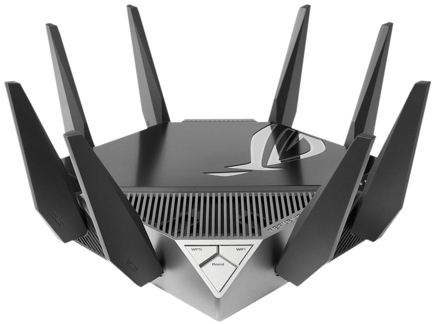 ASUS GT-AXE11000. Tipo de conexión WAN: RJ-45. Banda Wi-Fi: Tribanda (2.4 GHz / 5 GHz / 6 GHz), Estándar Wi-Fi: Wi-Fi 6 (802.11ax), Tasa de transferencia de datos WLAN (máx.): 4804 Mbit/s. Tipo de interfaz Ethernet LAN: Gigabit Ethernet, Ethernet LAN, velocidad de transferencia de datos: 10,100,1000,2500 Mbit/s, Tecnología de cableado: 10/100/1000Base-T(X). Algoritmos de seguridad soportados: SSH, WPA-Enterprise, WPA2-Enterprise, WPA3, WPS, NAT, funcionalidad: PPTP, L2TP, IPSec, RTSP, H.323, SIP Passthrough, PPPoE relay. Tipo de producto: Router de sobremesa, Color del producto: Negro, Indicadores LED: LAN, Poder, Estado, WAN