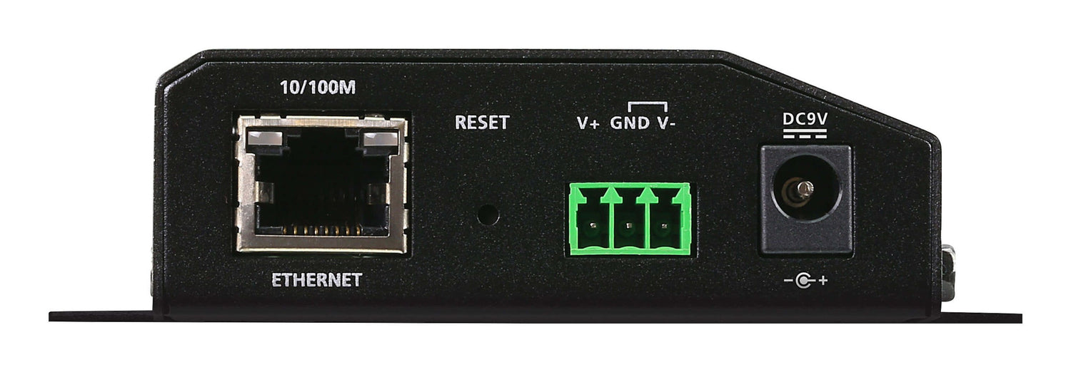 ATEN Servidor de dispositivos seguros RS-232 / RS-422 / RS-485 de 2 puertos con PoE. Alimentación: CC, PoE, Consumo de energía (max): 1,3 W, Consumo energético: 1,19 W. Indicadores LED: Poder, Estado. Ancho: 117 mm, Profundidad: 98 mm, Altura: 26 mm. Color del producto: Negro, Material de la carcasa: Metal, Seguridad: UL 60950-1, UL 62368-1. Número de almohadillas para pies: 4 pieza(s)