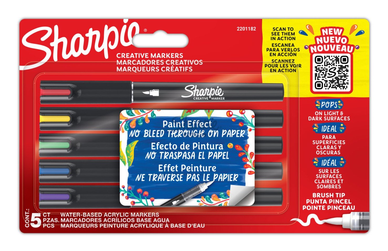 - Sharpie Creative Marker Acrylic Paint Pens / Water-Based Paint Markers / No-Bleed Ink Writes on Most Surfaces / Brush Tip / Assorted Colours / 5 Count