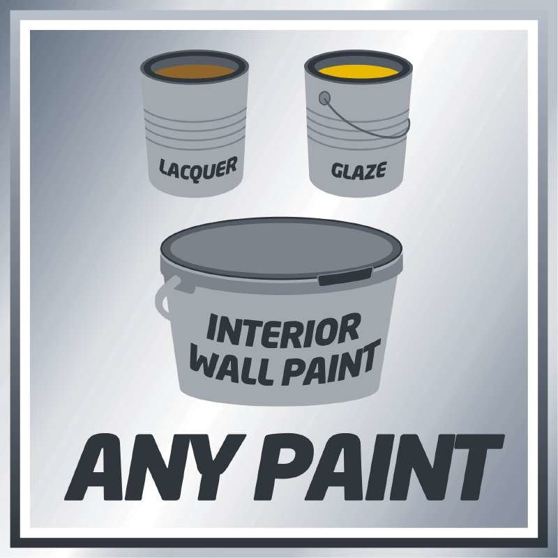 - Adecuado para pulverizar lacas, esmaltes y pinturas para paredes interiores