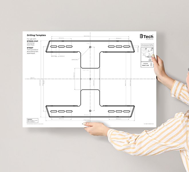 B-Tech Twin Cantilever, 50 kg, 190,5 cm (75"), 600 x 400 mm, Negro