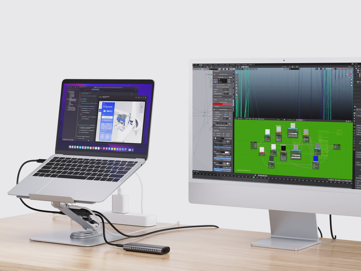 Conceptronic DONN27G, Soporte para ordenador portátil, Plata, Aluminio, 360°, USB 3.2 Gen 1 (3.1 Gen 1) Type-C, 5000 Mbit/s