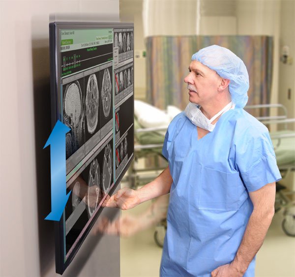 Levante y baje sin esfuerzo su TV o pantalla grande de 46 cm e incline la pantalla hasta 10° para evitar el reflejo. Este diseño revolucionario proporciona una capacidad de ajuste de altura sin precedentes en un módulo de perfil extremadamente bajo. Muévala con solo un toque hacia abajo para ver la pantalla mientras esté sentado o hacia arriba para verla de pie.