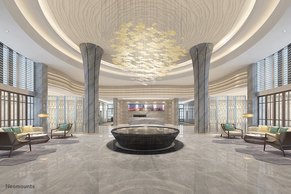 El soporte de techo Neomounts Pro MenuBoard, modelo NMPRO-WMB2, es un soporte de techo con inclinación para dos pantallas planas de hasta 55" "/ 65" ". Este soporte es una gran opción cuando se desea la máxima flexibilidad de visualización con su pantalla plana. La tecnología de inclinación Neomounts Pro (0 °; / -6 °/ 15 °) permite que el soporte cambie a un ángulo adecuado de mejor visualización