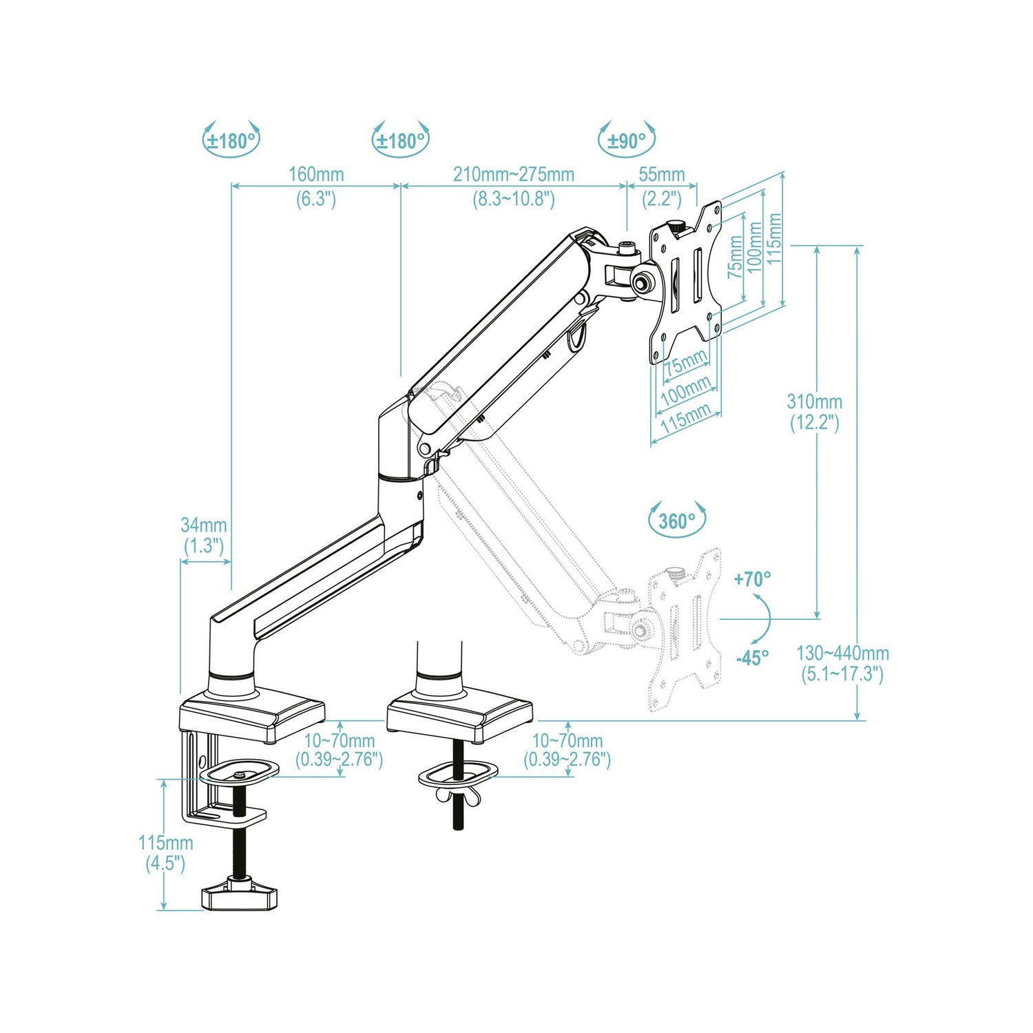 Soporte De Mesa Para Monitor Tooq Db1334tnr-W Giratorio Inclinable Hasta 10kg