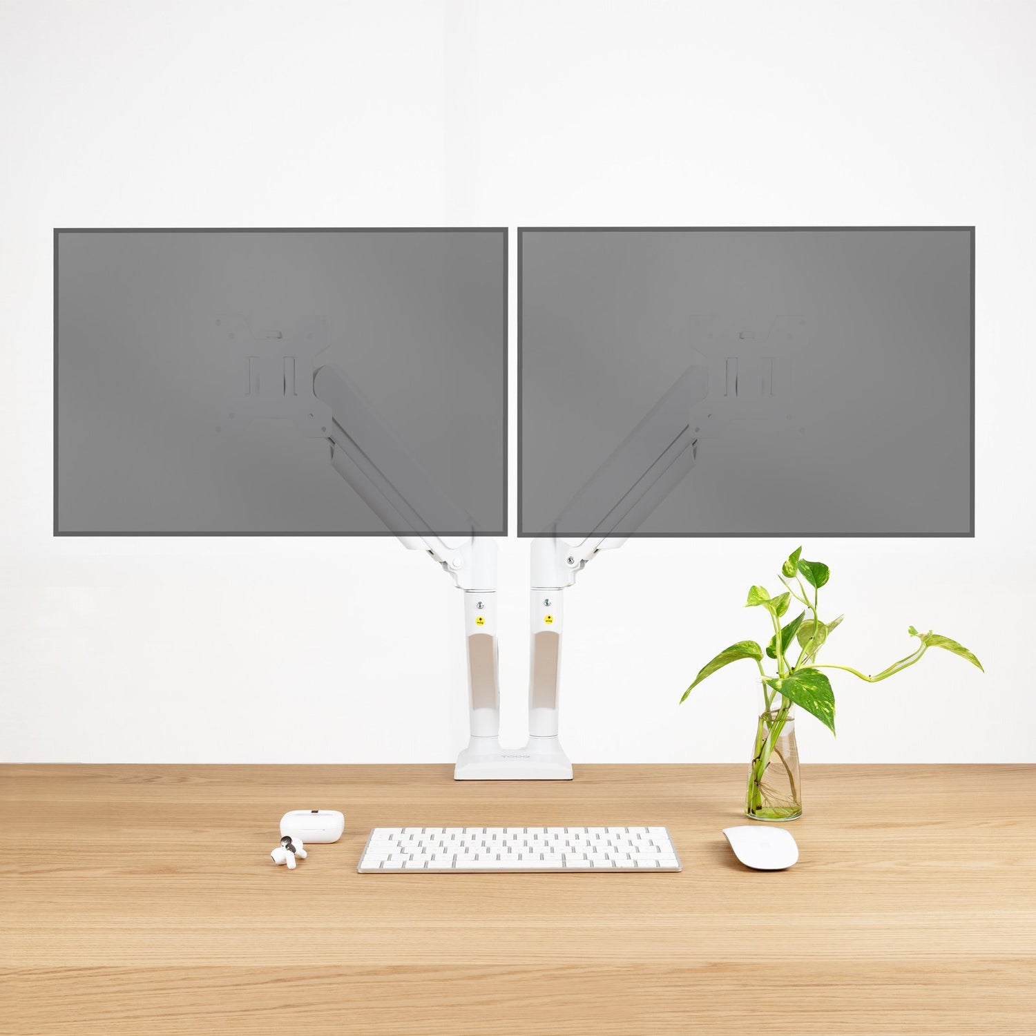Trae el orden a tu escritorio y olvídate de las malas posturas con nuestro nuevo soporte de mesa para dos pantallas. Puedes inclinarlo y girarlo a tu gusto. Instálalo fácilmente, disfrútalo plenamente.