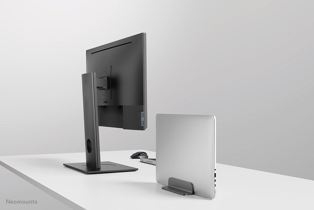El Neomounts NSLS300 es un soporte vertical para portátiles de 11" a 17". El soporte es ajustable en anchura, por lo que es de uso universal. El sólido diseño de aluminio garantiza una colocación segura del portátil. El NSLS300 es una solución inteligente para ahorrar espacio en cualquier escritorio.