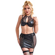 Déjate seducir por el Black PU Leather Mesh Garter Belt Sexy Halter Neck Lingerie Set de