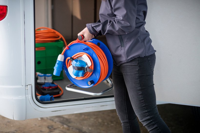 Brennenstuhl 1182470100. Color del producto: Negro, Azul, Naranja, Rojo, Material: Plástico, Longitud de cable: 23 m. Ancho: 225 mm, Profundidad: 290 mm, Altura: 365 mm. Voltaje de entrada: 230 V