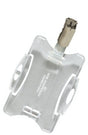 Fabricado en poliestirol. Puede utilizarse en posición vertical u horizontal. Puede combinarse con cadenas, cintas para portanombres y cordones extensibles.