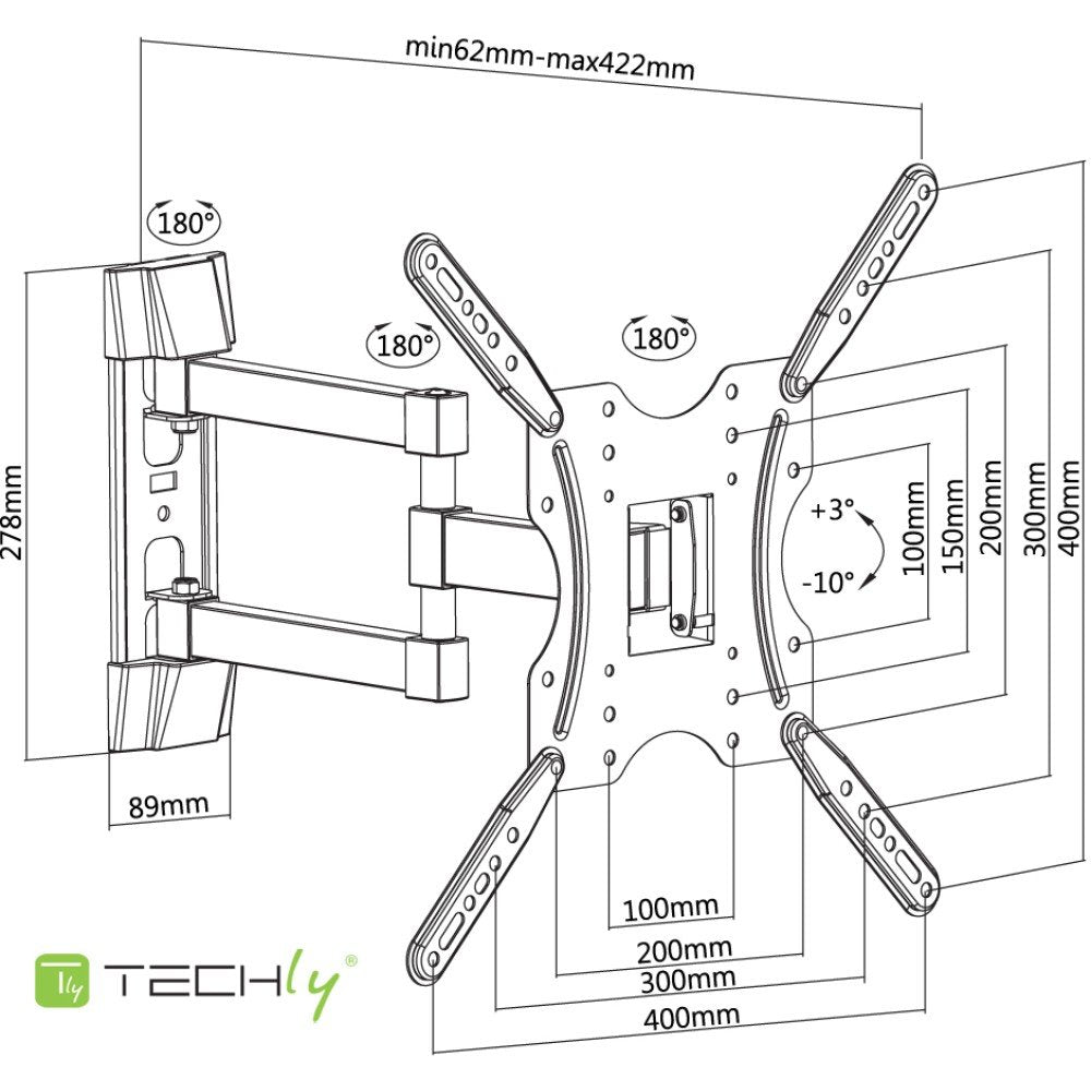 Techly ICA-PLB 136E. Capacidad máxima de peso: 30 kg, Tamaño mínimo de pantalla: 81,3 cm (32"), Tamaño máximo de pantalla: 139,7 cm (55"), Compatibilidad con interfaz de montaje (min): 100 x 100 mm, Compatibilidad con interfaz de montaje (max): 400 x 400 mm. Ángulo de inclinación: -10 - 3°, Distancia a la pared (min): 6,2 cm, Distancia a la pared (max): 42,2 cm. Color del producto: Negro