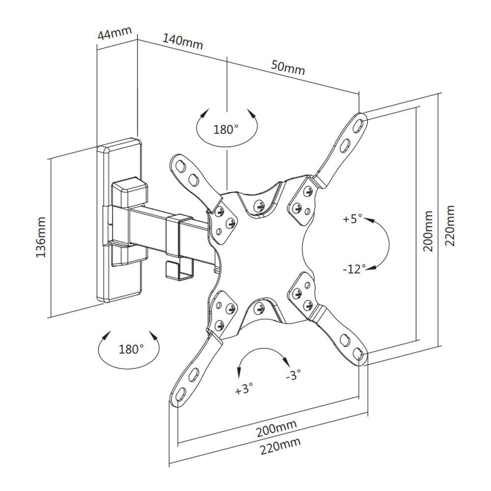 Techly ICA-PLB-400STY. Capacidad máxima de peso: 20 kg, Tamaño mínimo de pantalla: 33 cm (13"), Tamaño máximo de pantalla: 106,7 cm (42"), Compatibilidad con interfaz de montaje (min): 75 x 75 mm, Compatibilidad con interfaz de montaje (max): 200 x 200 mm. Ángulo de inclinación: -5 - 12°, Ángulo de rotación: 180°, Distancia a la pared (min): 6 cm, Distancia a la pared (max): 19 cm. Color del producto: Negro