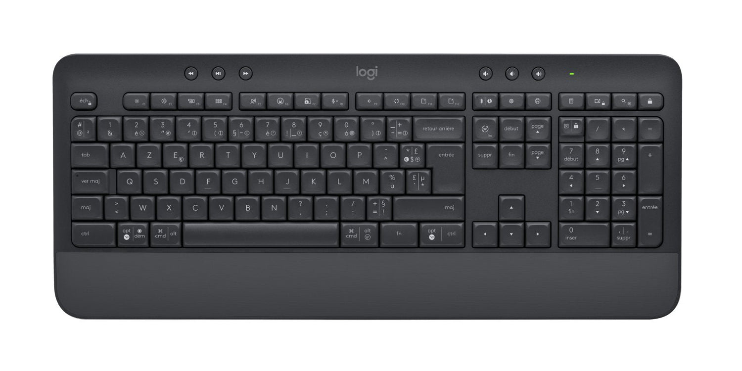 Logitech 920-010995. Formato del teclado: Completo (100%). Estilo de teclado: Derecho. Tecnología de conectividad: Inalámbrico, Interfaz del dispositivo: Bluetooth, Interruptor del teclado: Interruptor de membrana, Diseño de teclado: AZERTY, Teclado, cantidad de teclas: 118. Descansa muñecas. Uso recomendado: Oficina. Color del producto: Grafito. Ratón incluido