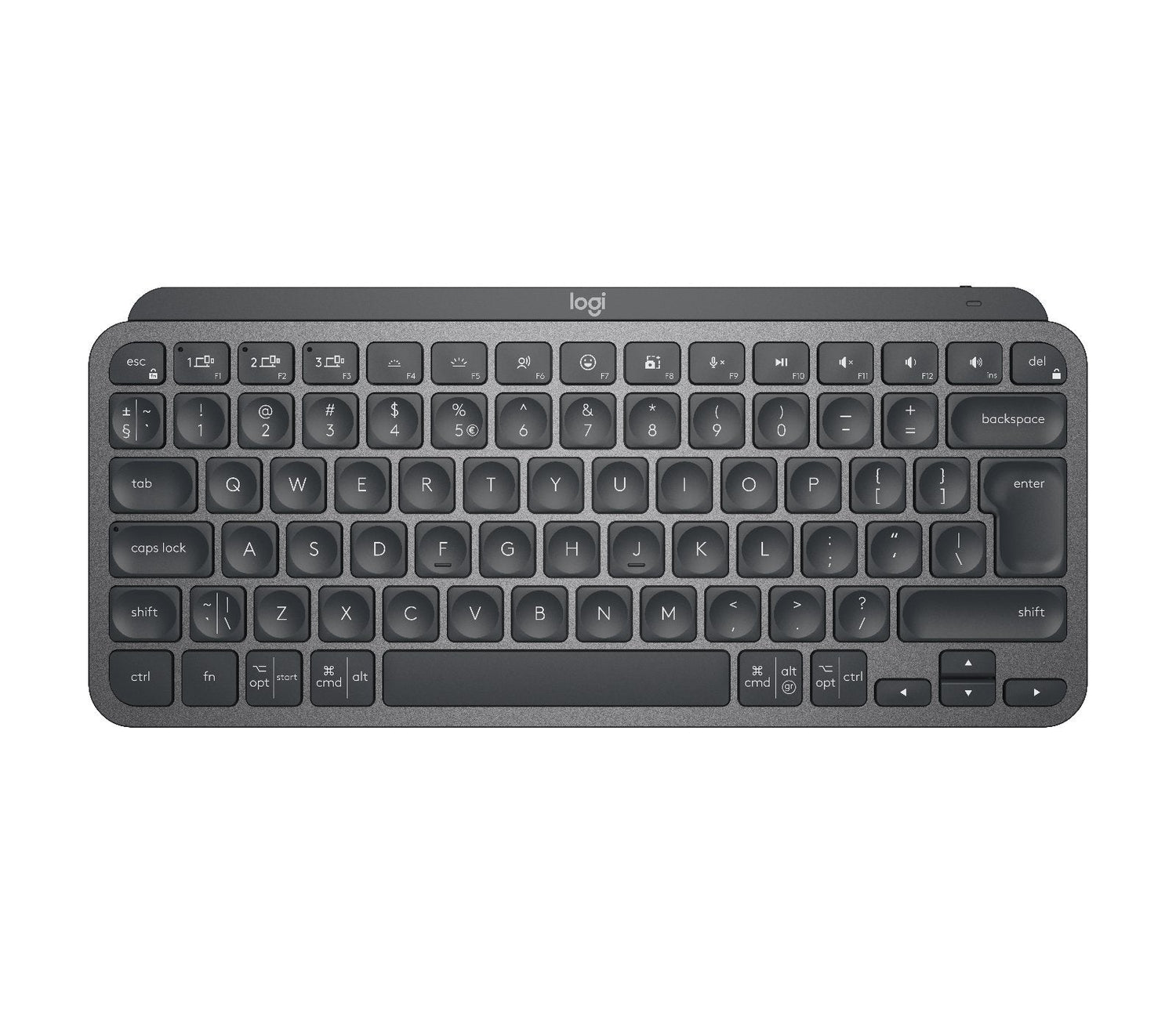 Logitech MX Keys Mini. Formato del teclado: Mini. Estilo de teclado: Derecho. Tecnología de conectividad: Inalámbrico, Interfaz del dispositivo: RF Wireless + Bluetooth, Diseño de teclado: QWERTY. Tipo de retroiluminación: LED. Uso recomendado: Oficina. Color del producto: Grafito