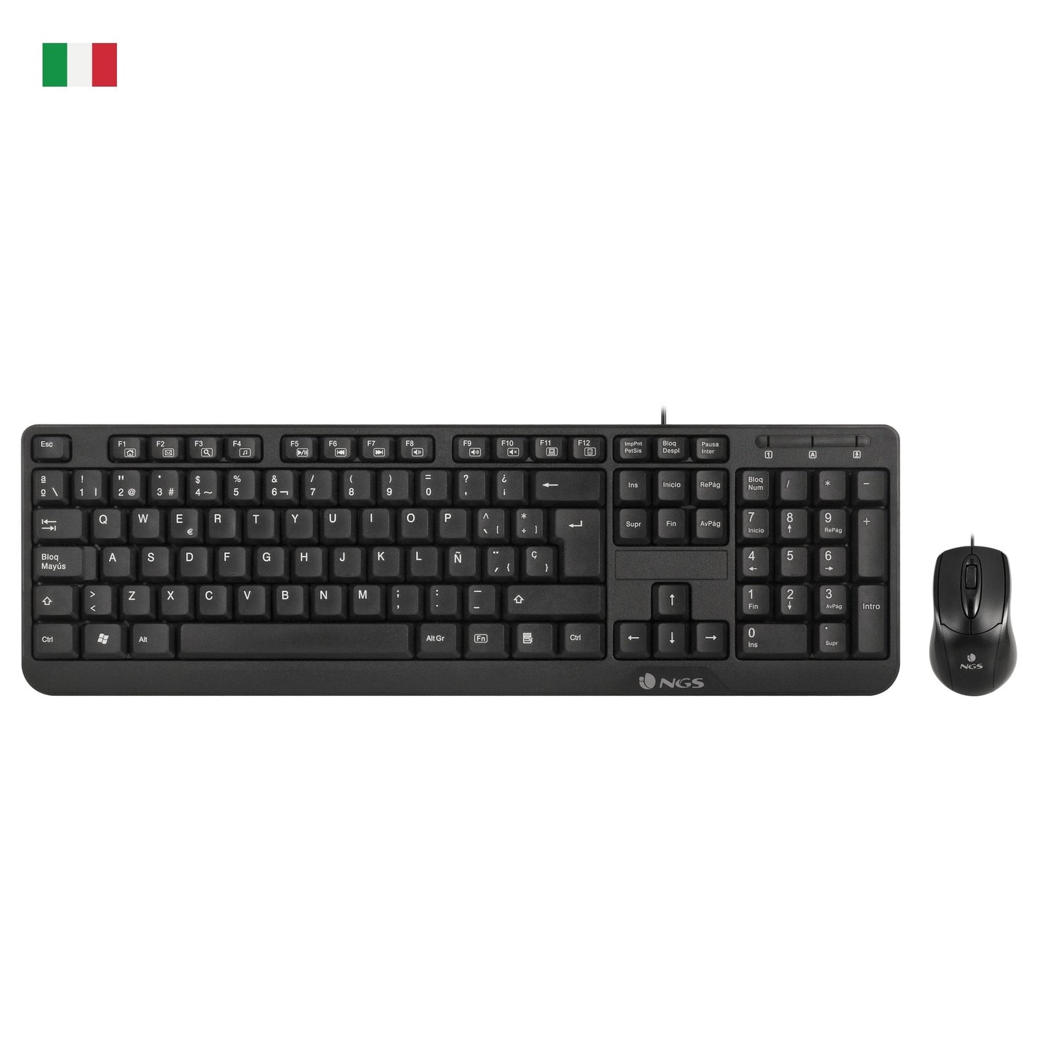Teclado Italiano + Raton Ngs Kit Multimedia Con Cable - Qwerty - 12 Teclas Multimedia - Color Negro
